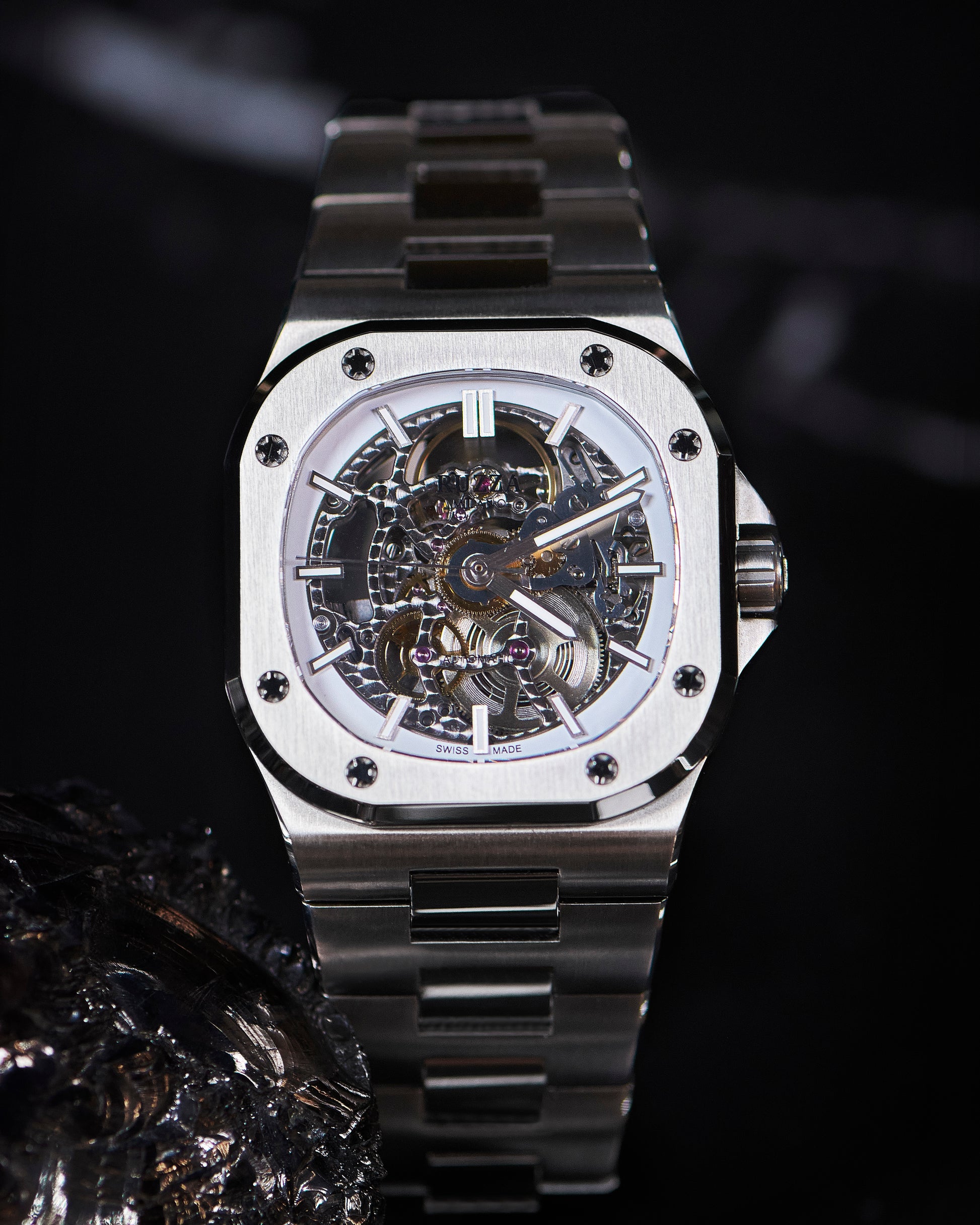 L'estetica del Ruzza Watch Luxury non si ferma al quadrante. Il segnatempo è progettato per essere ammirato in ogni sua angolazione, specialmente dove batte il suo cuore pulsante.